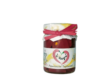 0.09 kgI peperoncini tagliuzzati sono peperoncini freschi tagliati in piccoli pezzi, conservati in olio extravergine d'oliva. Questa preparazione consente di mantenere intatto il loro sapore piccante e aromatico, rendendoli un condimento versatile per arricchire piatti di pasta, sughi, insalate, carne e pesce. Il formato tagliuzzato permette di dosare facilmente la piccantezza, aggiungendo un tocco deciso a ogni piatto. Perfetti per chi ama il gusto forte e autentico della cucina calabrese.